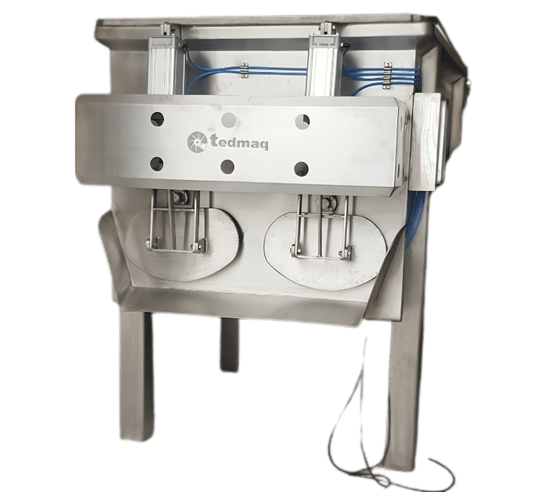 Diseño sanitario con superficies lisas y de fácil acceso, cumpliendo con las normativas de inocuidad para la industria alimentaria.