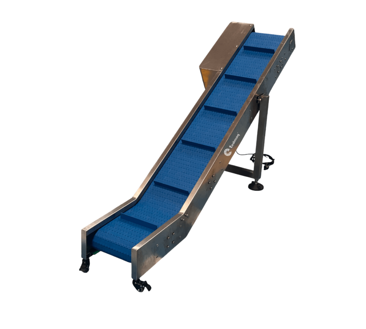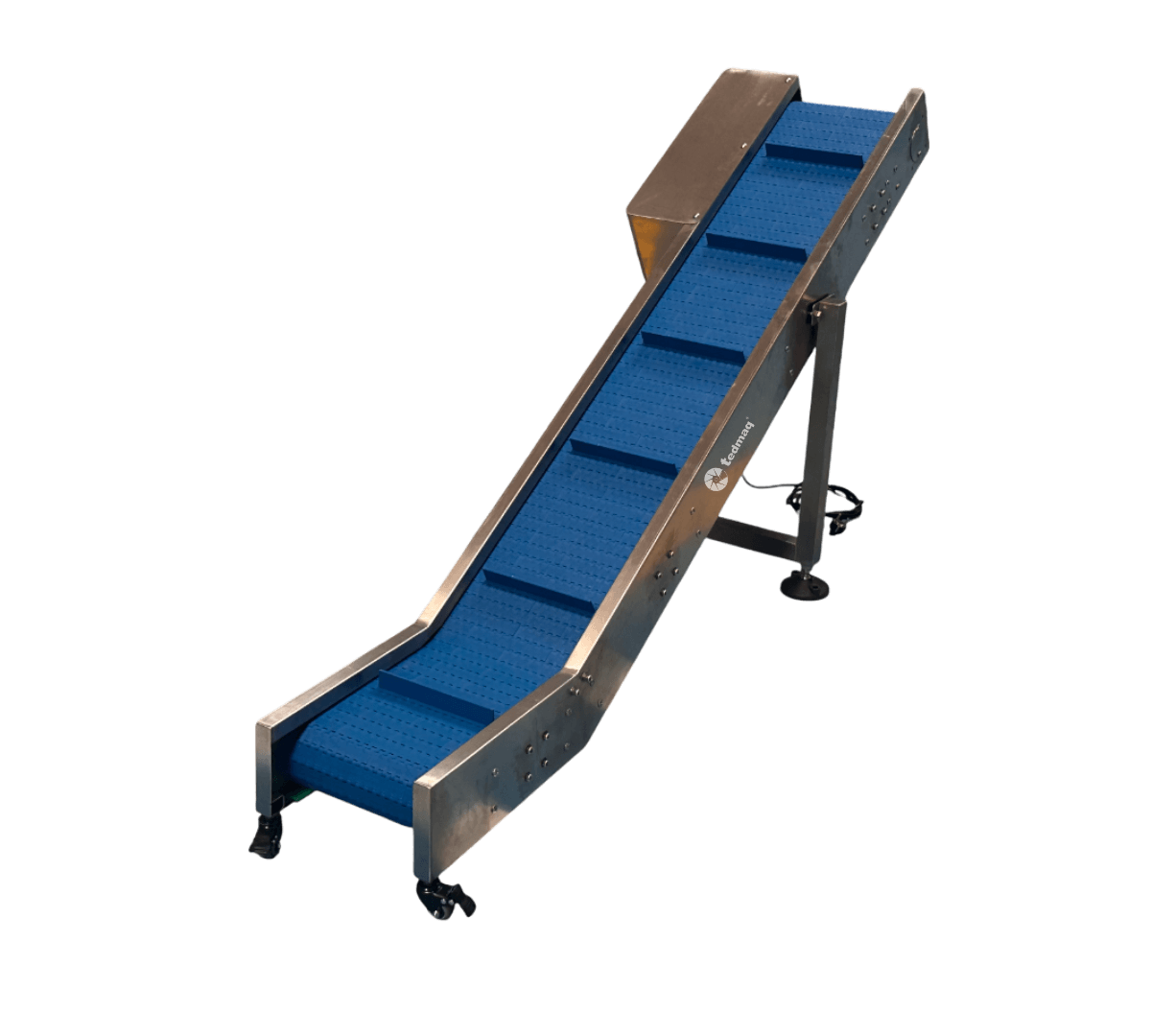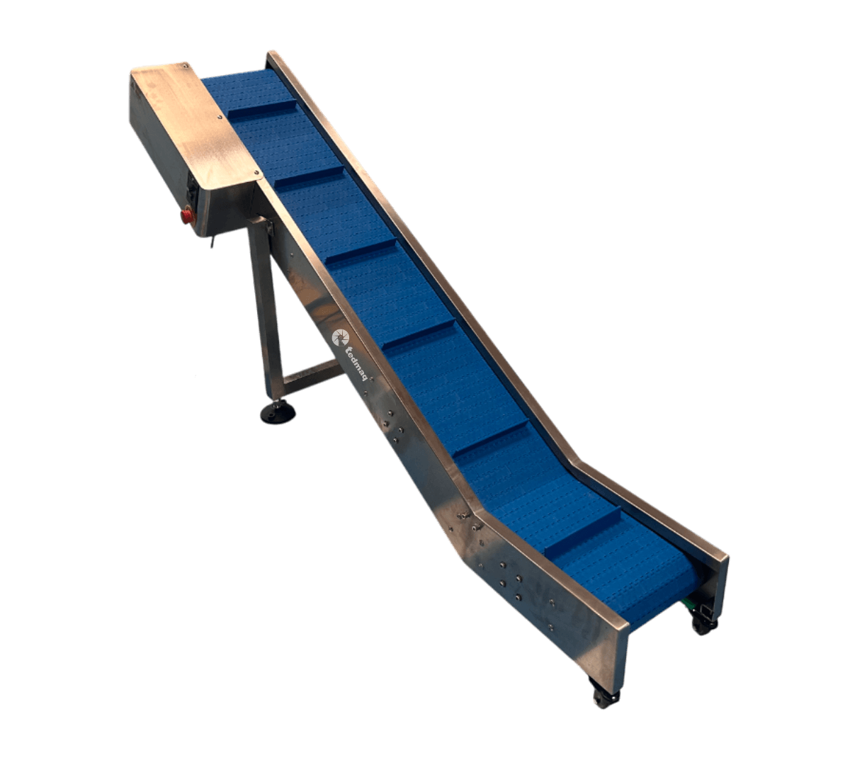 Fabricada en acero inoxidable y equipada con un sistema de arrastre de alta estabilidad, ofrece un desplazamiento suave y continuo que garantiza una operación segura y confiable en jornadas de alta exigencia.