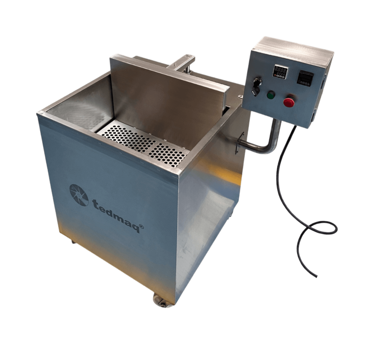 La Cámara de Termoencogido es un equipo diseñado para optimizar el proceso de termoencogido en productos cárnicos y lácteos, garantizando un sellado uniforme y de alta calidad mediante inmersión en agua caliente.