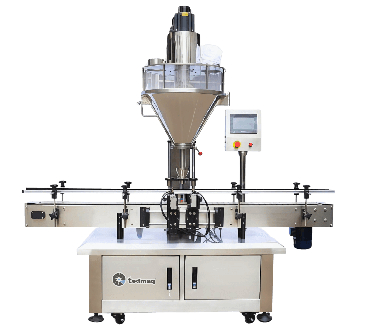 • Alta precisión de llenado: Sistema de tornillo sinfín controlado por servomotor que garantiza dosificaciones exactas, reduciendo el desperdicio y asegurando uniformidad.