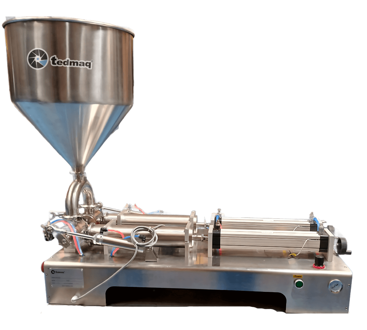 - Alta precisión: Sistema de pistón que garantiza un llenado uniforme, ideal para productos de alta densidad o viscosidad.