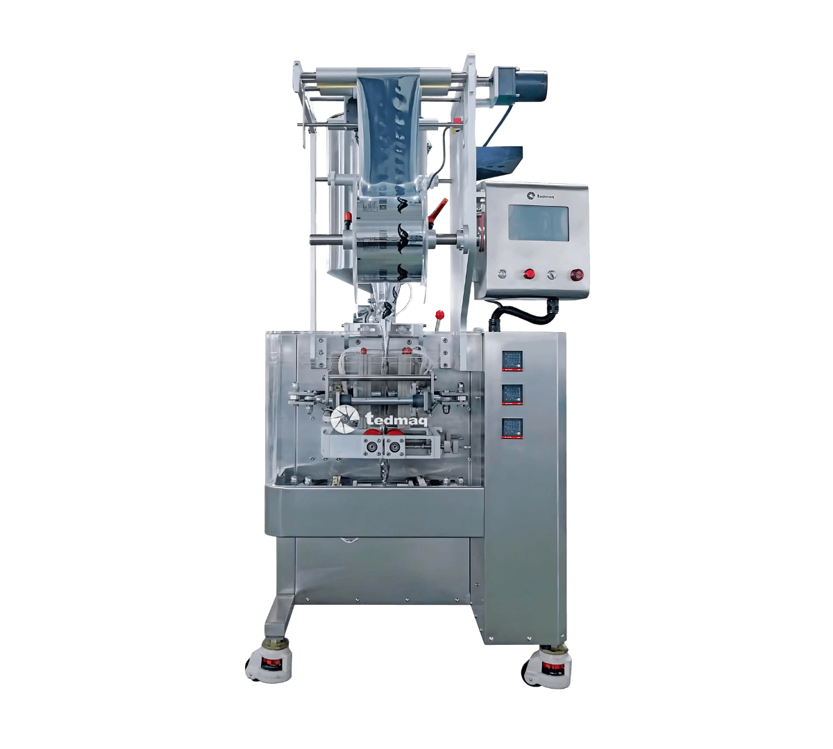La máquina Empacadora Sachet para Líquidos Élite, está diseñada para automatizar el envasado de líquidos, salsas, mieles, mermeladas y productos viscosos en pequeños sachets con sellado en los cuatro lados. Combina precisión en el dosificado, excelente sellado y operación completamente automática, lo que la convierte en una máquina ideal para sectores que requieren higiene, presentación profesional y eficiencia productiva.