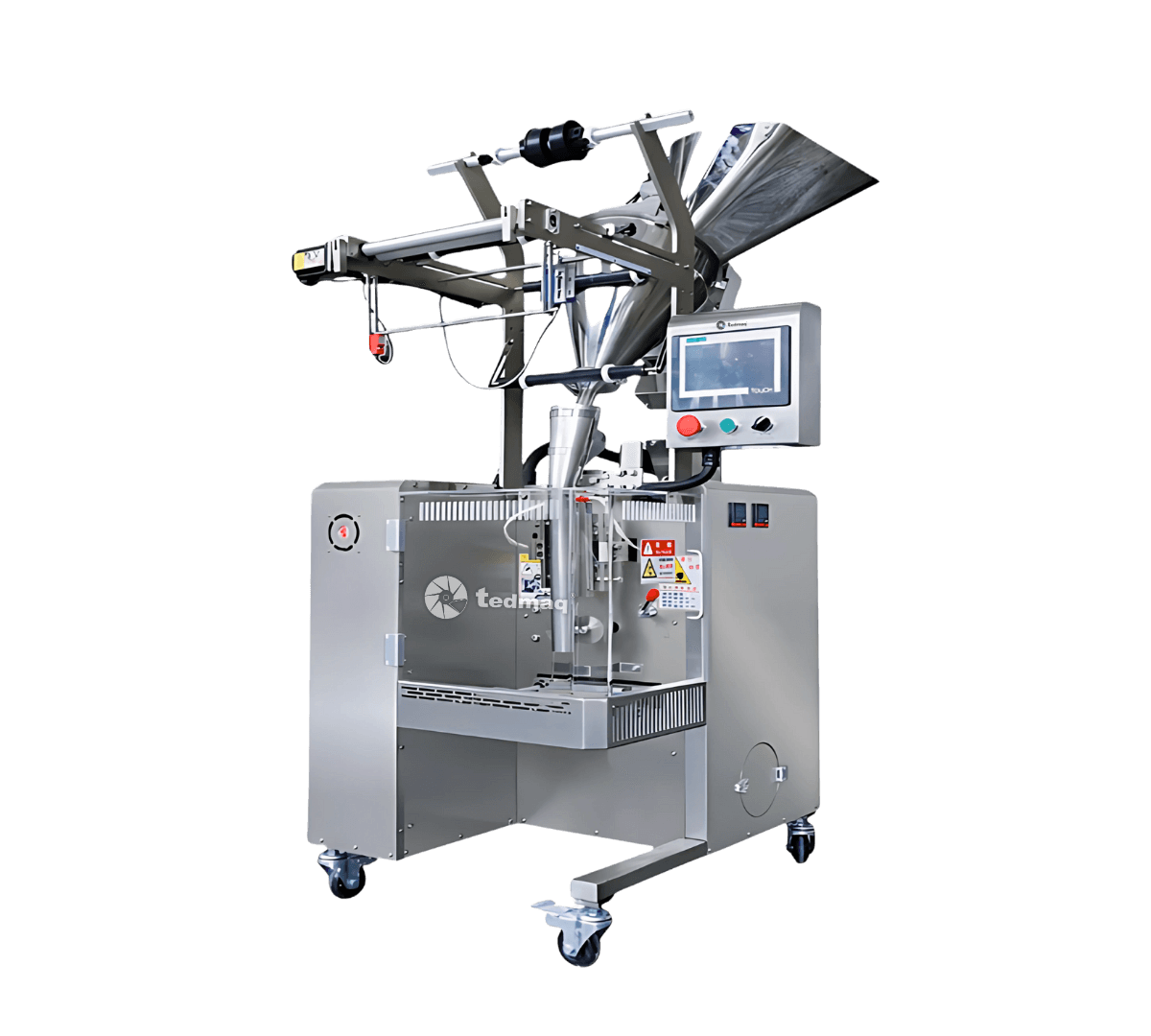 La Empacadora Sachet para Polvos Élite Testá diseñada para el llenado y envasado automatizado de materiales en polvo y partículas finas, combinando precisión, velocidad y calidad de empaque. Gracias a su sistema de dosificado por tornillo sinfín (llenado en espiral), garantiza una medición exacta y uniforme, especialmente en productos de difícil fluidez.