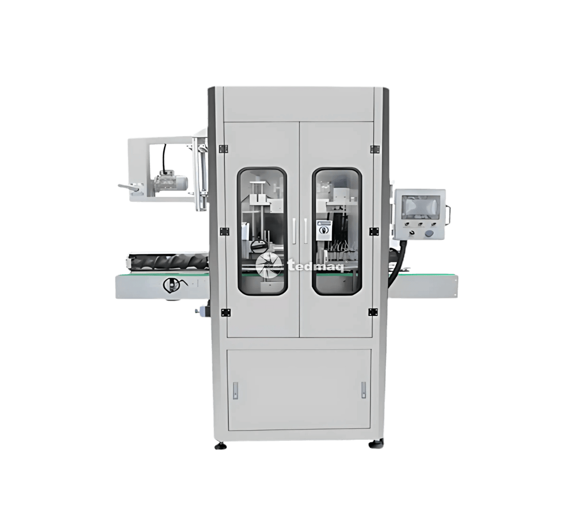 - Alta precisión en corte y posicionamiento: El sistema de control asegura una colocación exacta de la manga termoencogible, incluso en envases de formas irregulares.
