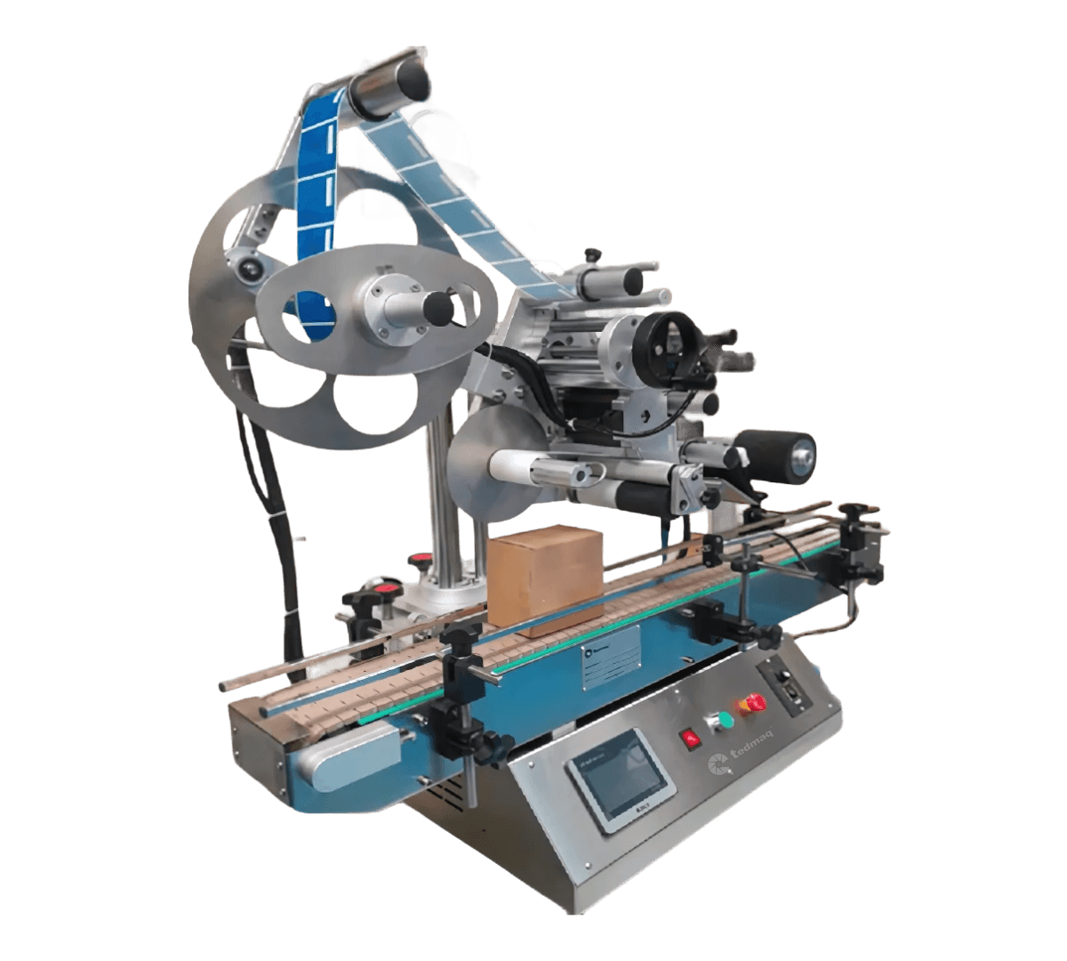 La Etiquetadora Automática de Cajas TEDMAQ es un equipo diseñado para aplicar etiquetas adhesivas en rollo de manera uniforme y precisa sobre cajas plegadizas y empaques secundarios. Con una velocidad de 20 a 60 piezas por minuto, controlada mediante PLC y pantalla táctil HMI, garantiza un proceso de etiquetado confiable, rápido y adaptable a diferentes formatos de empaque.