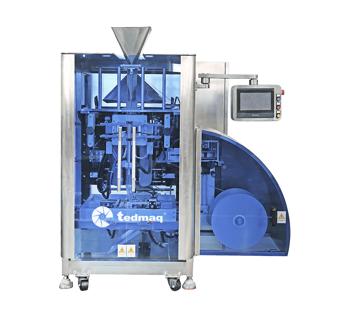 La Formadora y Empacadora Doypack Vertical TEDMAQ es una máquina de alto rendimiento diseñada para automatizar el formado, llenado y sellado de bolsas tipo doypack y bolsas especiales, ofreciendo máxima precisión y adaptabilidad en líneas de producción modernas.