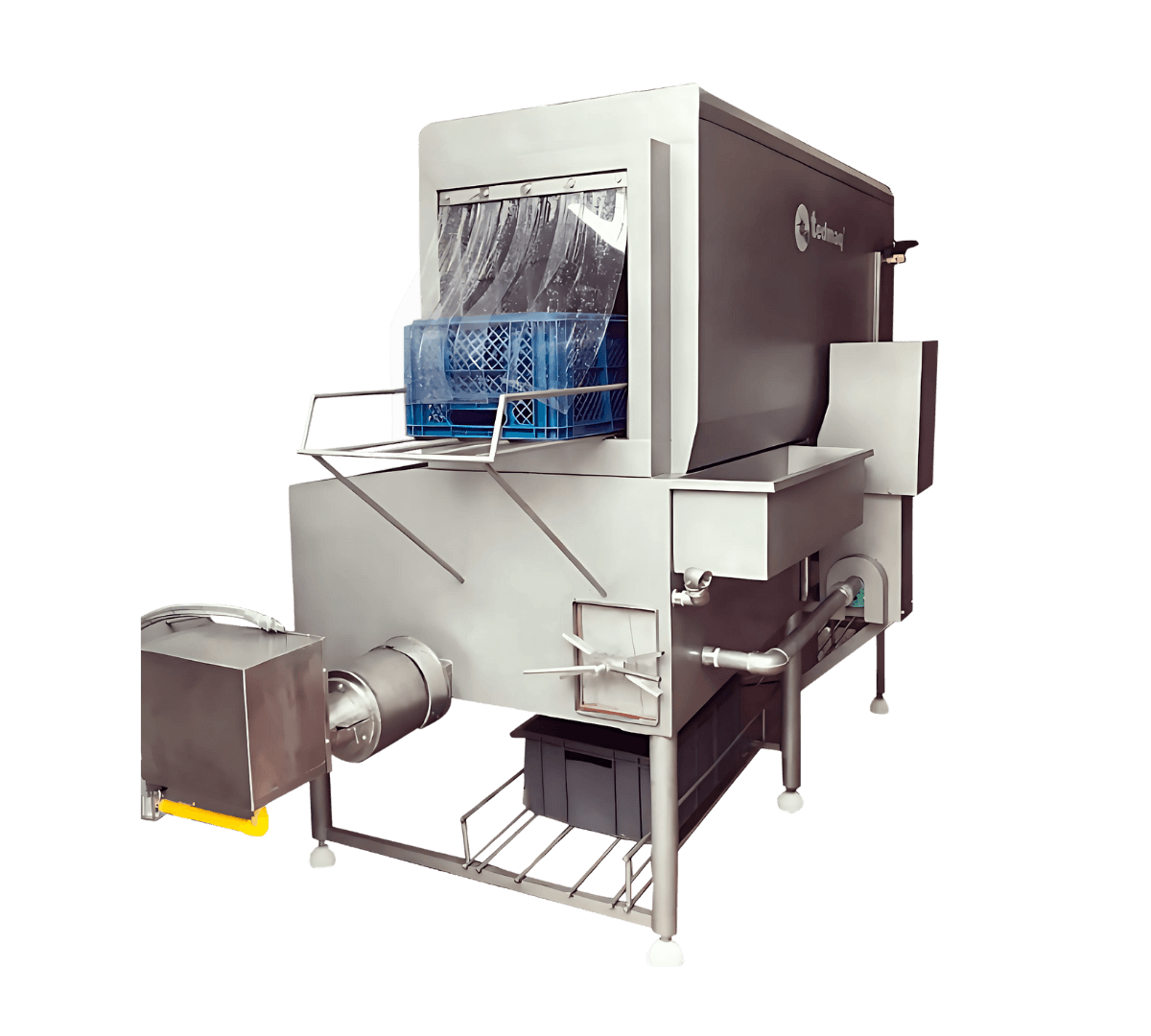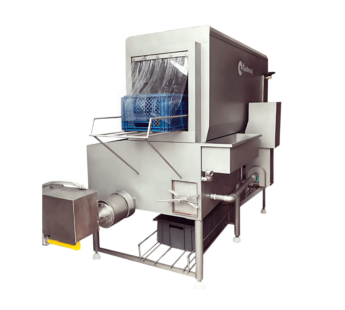 Está fabricada 100% en acero inoxidable de diferentes calibres, lo que garantiza resistencia, fácil limpieza y una larga vida útil incluso en entornos exigentes. Su sistema de lavado ofrece resultados sanitarios óptimos con un consumo mínimo de agua, convirtiéndola en una herramienta clave para plantas que priorizan la eficiencia y la sostenibilidad. Como opcionales, puede incluir un módulo de desinfección y un túnel de secado integrado.
