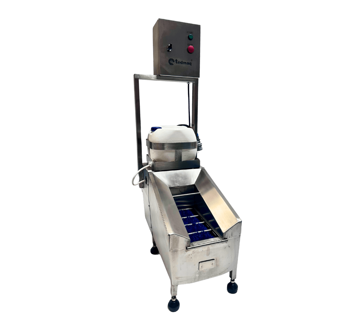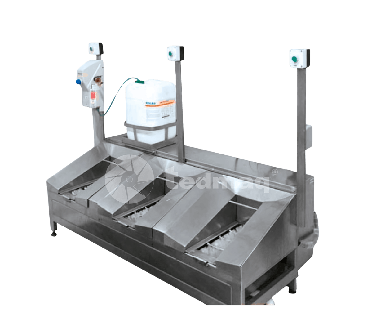 El Lavasuelas disponible en versiones de 1, 2 y 3 puestos, está diseñado para zonas críticas donde se exige un alto estándar de inocuidad. Este equipo es ideal para mantener el control sanitario en áreas de producción alimentaria, farmacéutica, cosmética o química. Su sistema de accionamiento manual por palanca activa cepillos giratorios y la dosificación automática de agua, lo que asegura una limpieza profunda y uniforme en las suelas del calzado de operarios.