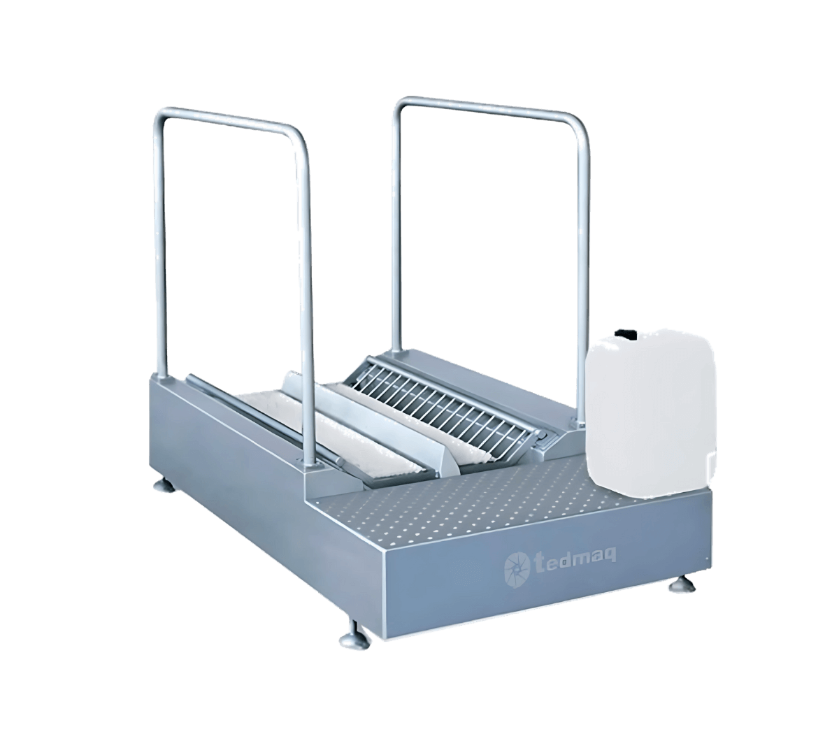 El Lavasuelas Continuo es un equipo diseñado para garantizar procesos rigurosos de limpieza y desinfección de suelas en áreas de producción sensibles. Ideal para industrias con altos estándares de bioseguridad, este sistema automatizado incorpora sensores inteligentes y, opcionalmente, un torniquete de control de acceso que restringe el paso únicamente a quienes hayan completado el proceso de higiene o un módulo opcional de desinfección de manos.