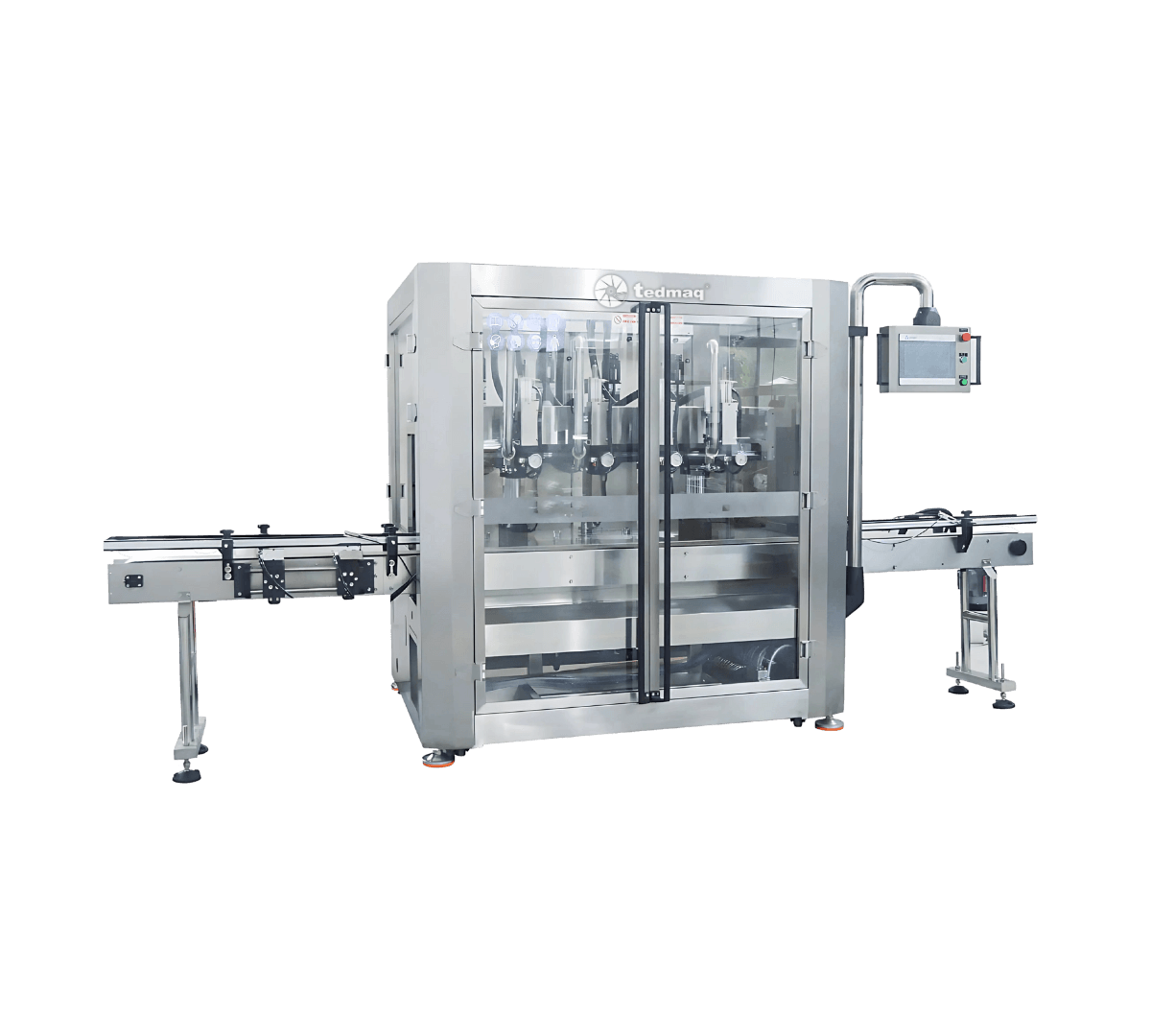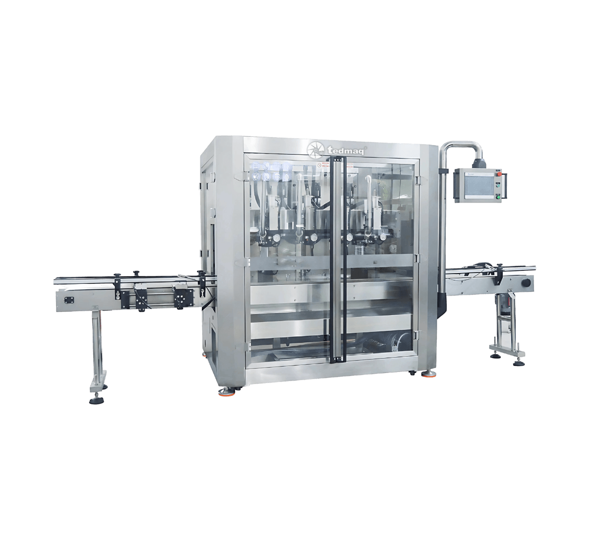 - Velocidad y precisión: Boquillas de seguimiento que acompañan el movimiento de cada envase, garantizando un llenado exacto, uniforme y sin derrames, incluso en líneas de alta producción.
