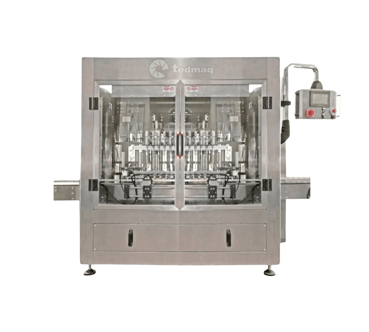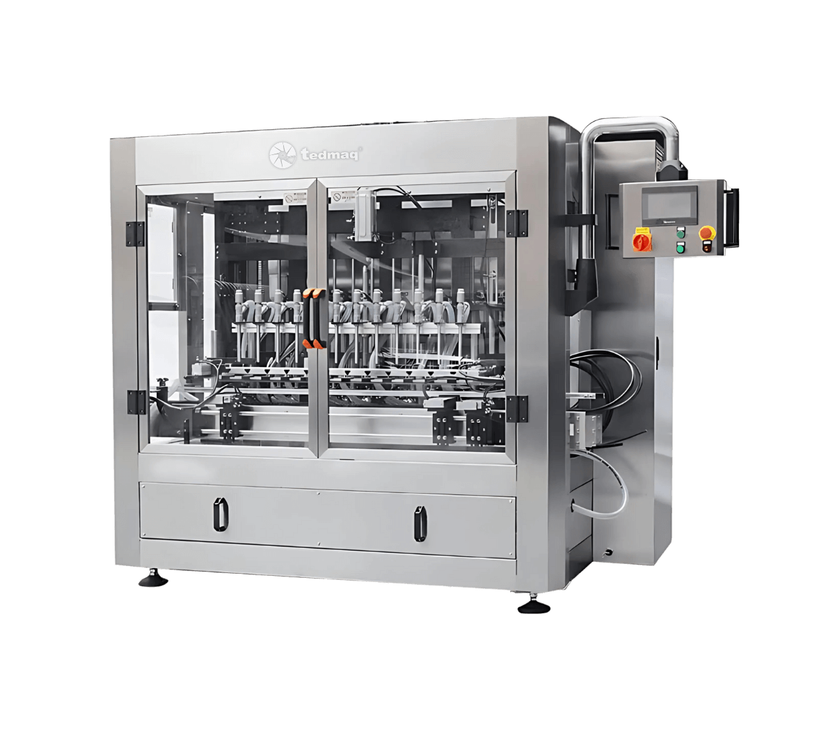 Equipada con un sistema de pistones de cabezal múltiple, esta máquina permite controlar con gran exactitud el volumen de llenado, garantizando consistencia en cada envase. Su operación se gestiona mediante PLC y pantalla táctil, lo que facilita la configuración, el monitoreo en tiempo real y el cambio rápido entre referencias.