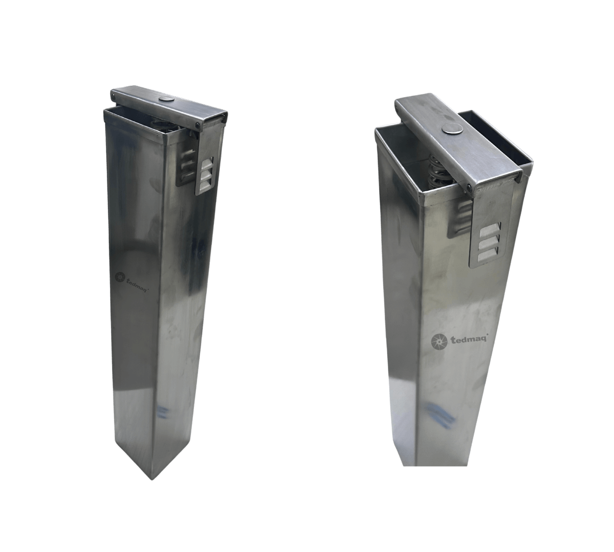 Fabricado 100% en acero inoxidable, este molde utiliza un sistema de prensas resortadas elásticas que se adaptan al volumen del producto, presionando o cediendo según su consistencia, lo que permite obtener mayor compactación sin deformación. Medidas del molde (10x10x30 cm), (10x10x40 cm), (10x10x60 cm), (10x10x80 cm), otras dimensiones disponibles bajo solicitud del cliente