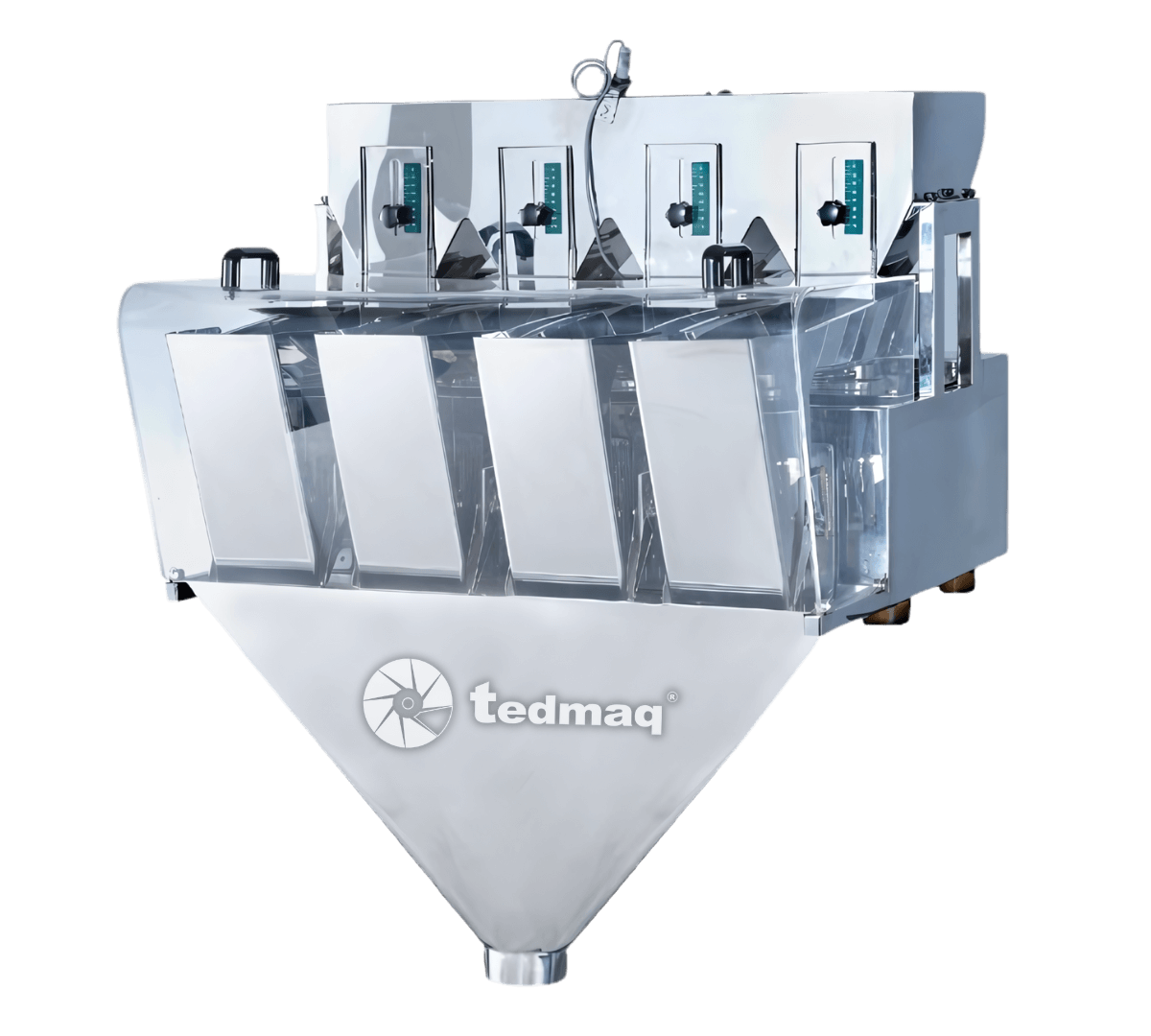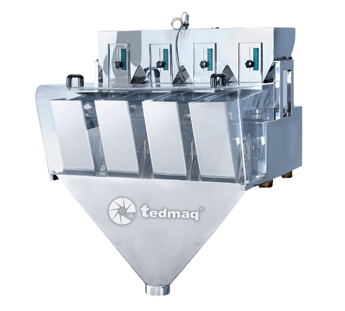 Gracias a su sistema de cuatro balanzas electrónicas, este equipo permite pesajes simultáneos con una alta exactitud, reduciendo tiempos de procesamiento y optimizando la productividad en líneas de envasado industriales. Su diseño avanzado minimiza el desperdicio y mejora el control del flujo del producto.