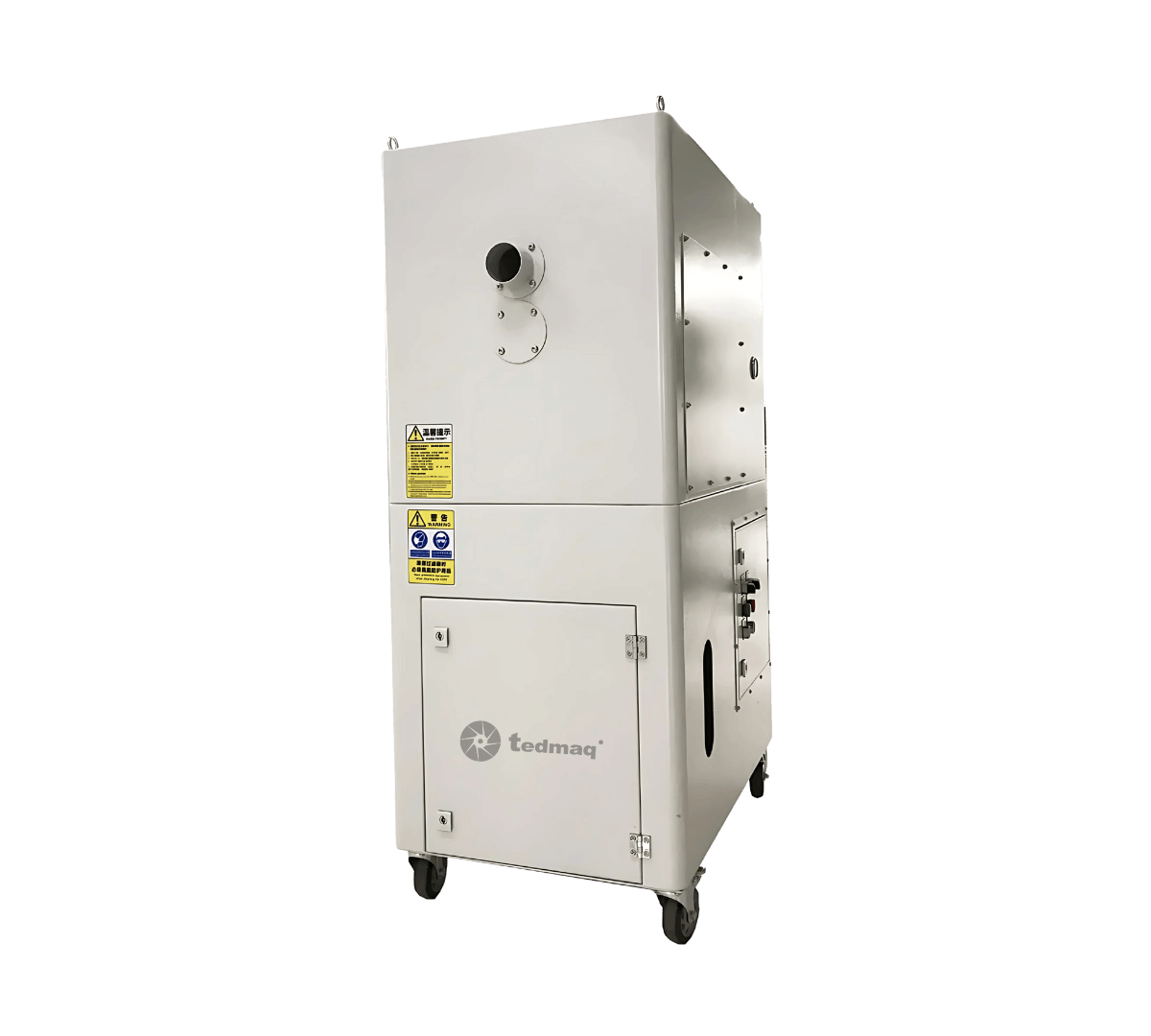 - Captura eficiente en línea: Retiene partículas y polvos finos directamente desde su fuente de emisión, evitando su dispersión en el ambiente.