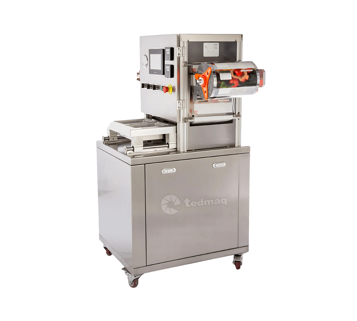 Su diseño robusto y sanitario permite trabajar con diversos formatos de bandejas y tipos de película, y es compatible con hasta tres gases simultáneamente, lo que la convierte en una solución versátil para industrias alimentarias que requieren alto nivel de inocuidad, frescura y presentación de calidad.