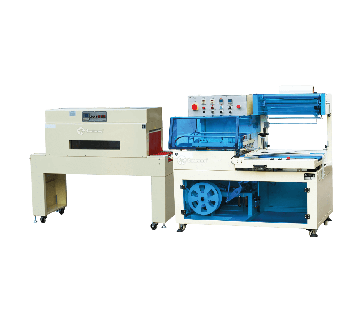La máquina Selladora en L Automática 450 Mueble al Piso TEDMAQ está diseñada para automatizar el corte, sellado y transporte de productos en una sola operación, utilizando film retráctil como material de embalaje. Es la solución ideal para empresas que buscan velocidad, eficiencia y presentación impecable en sus empaques.
