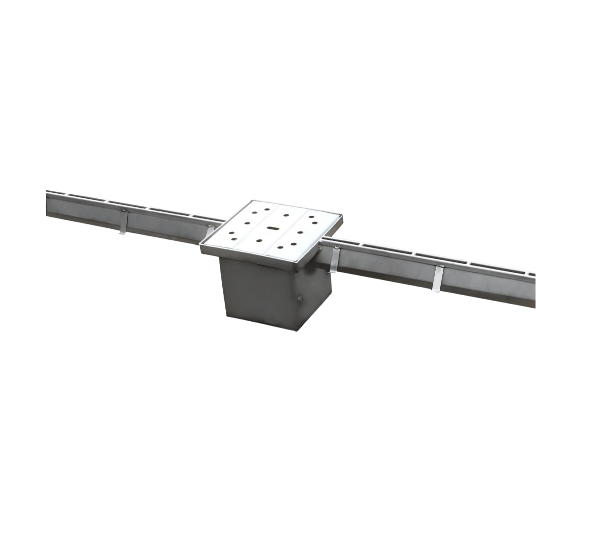 Fabricado en acero inoxidable 100%, este sistema incorpora canalinas con pendiente integrada del 1%, bridas de unión reforzadas y un sumidero con sifón conforme a norma, que asegura la evacuación correcta de líquidos y la prevención de malos olores. El sistema puede configurarse como una canalina única o como varias líneas de drenaje que convergen en un solo sumidero, brindando versatilidad y eficiencia según el diseño de tu planta.
