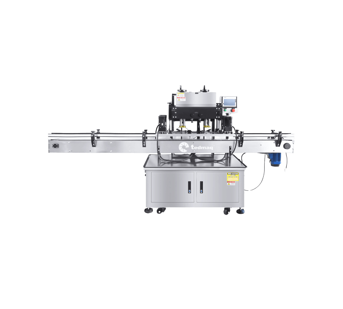 • Doble cabezal de tapado: Incrementa significativamente la velocidad de producción al permitir el cierre simultáneo de dos unidades.