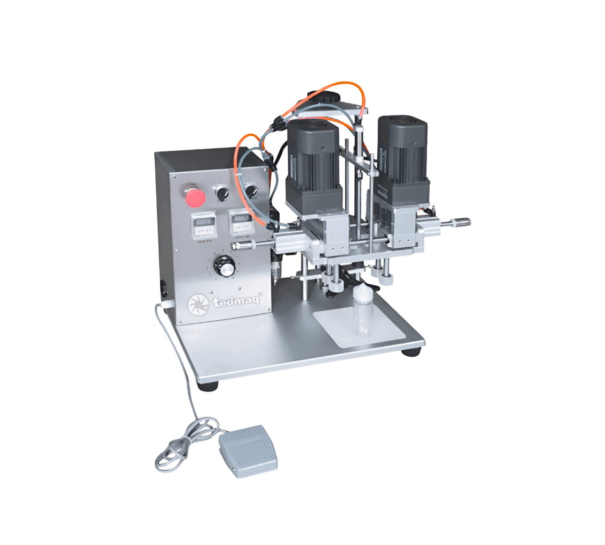 La Tapadora Semiautomática de 1 Cabezal Sobremesa es un equipo neumático y compacto, diseñado para cerrar eficientemente botellas con tapas roscadas de diferentes tamaños. Gracias a su estructura sobre mesa, es perfecta para espacios reducidos, líneas de baja a media producción o laboratorios que buscan una solución práctica y económica sin sacrificar calidad.